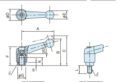 03015 M10 Zinc alloy solid adjustable handle -Orange color